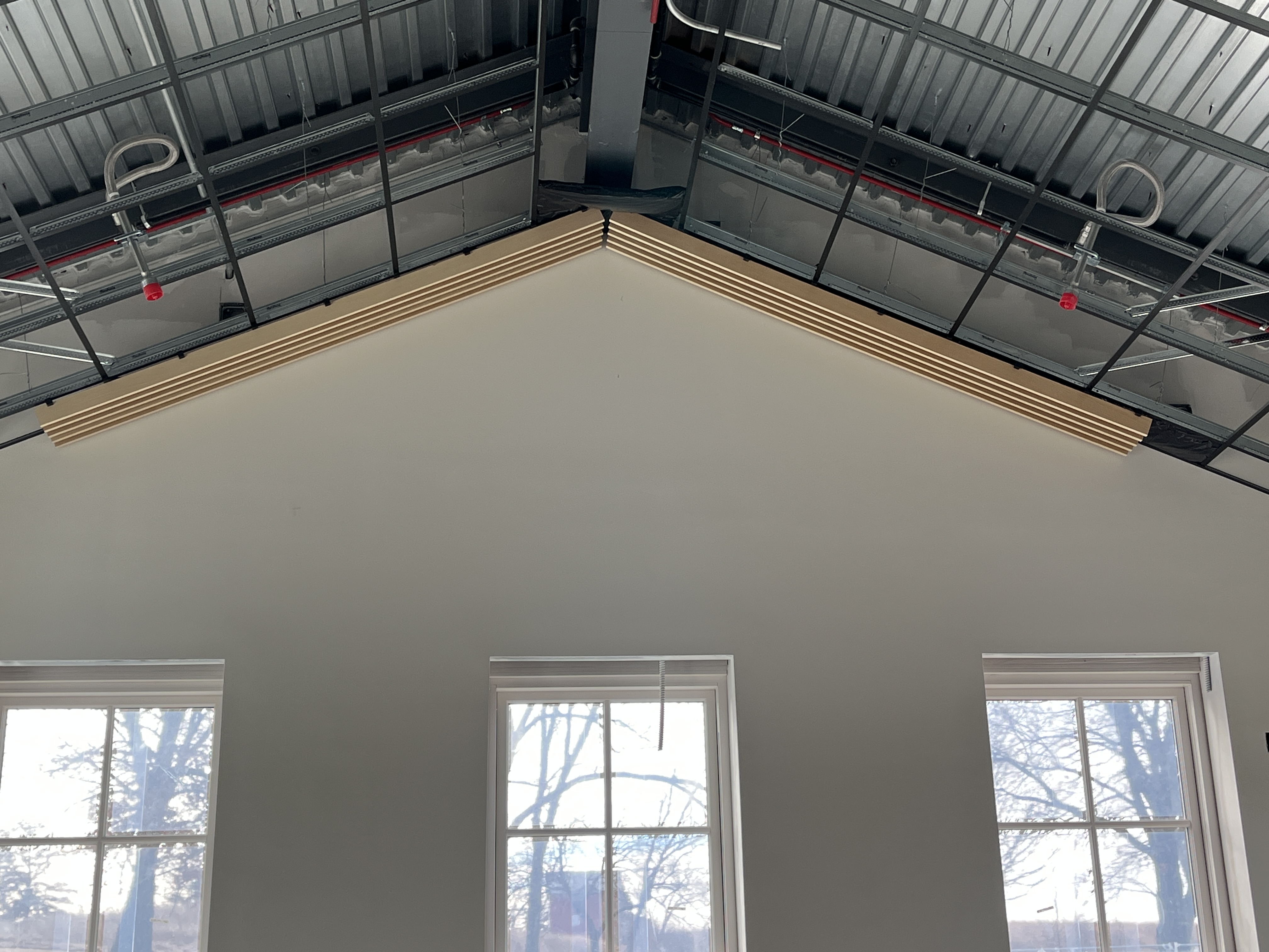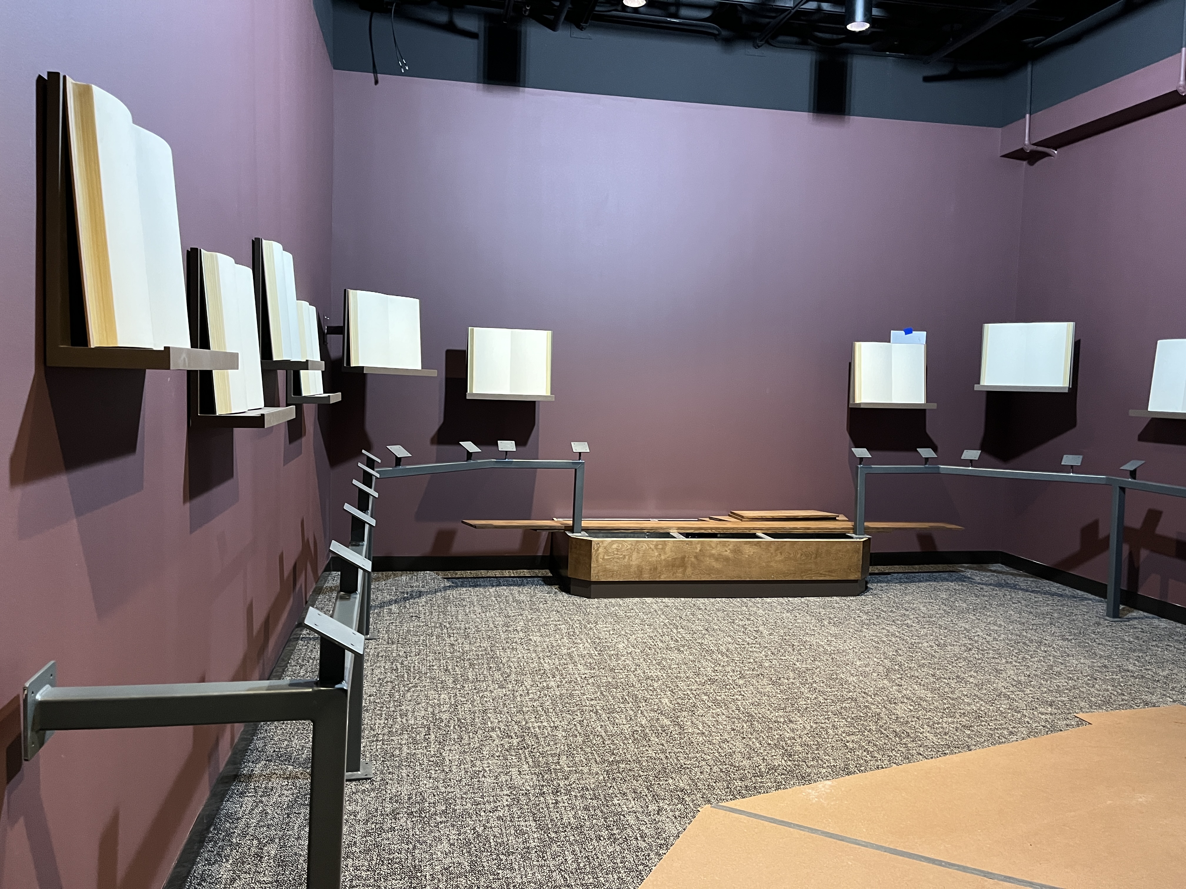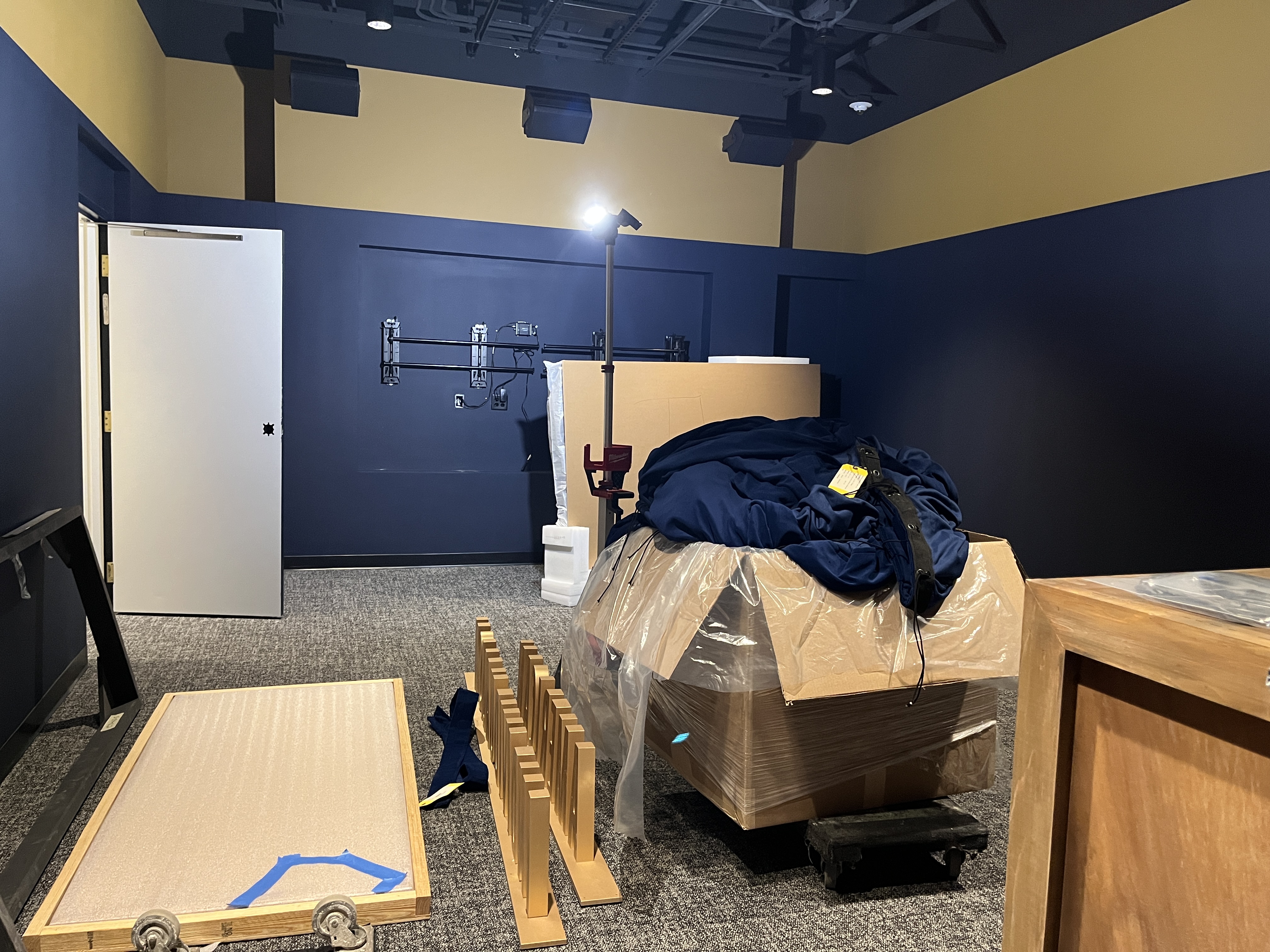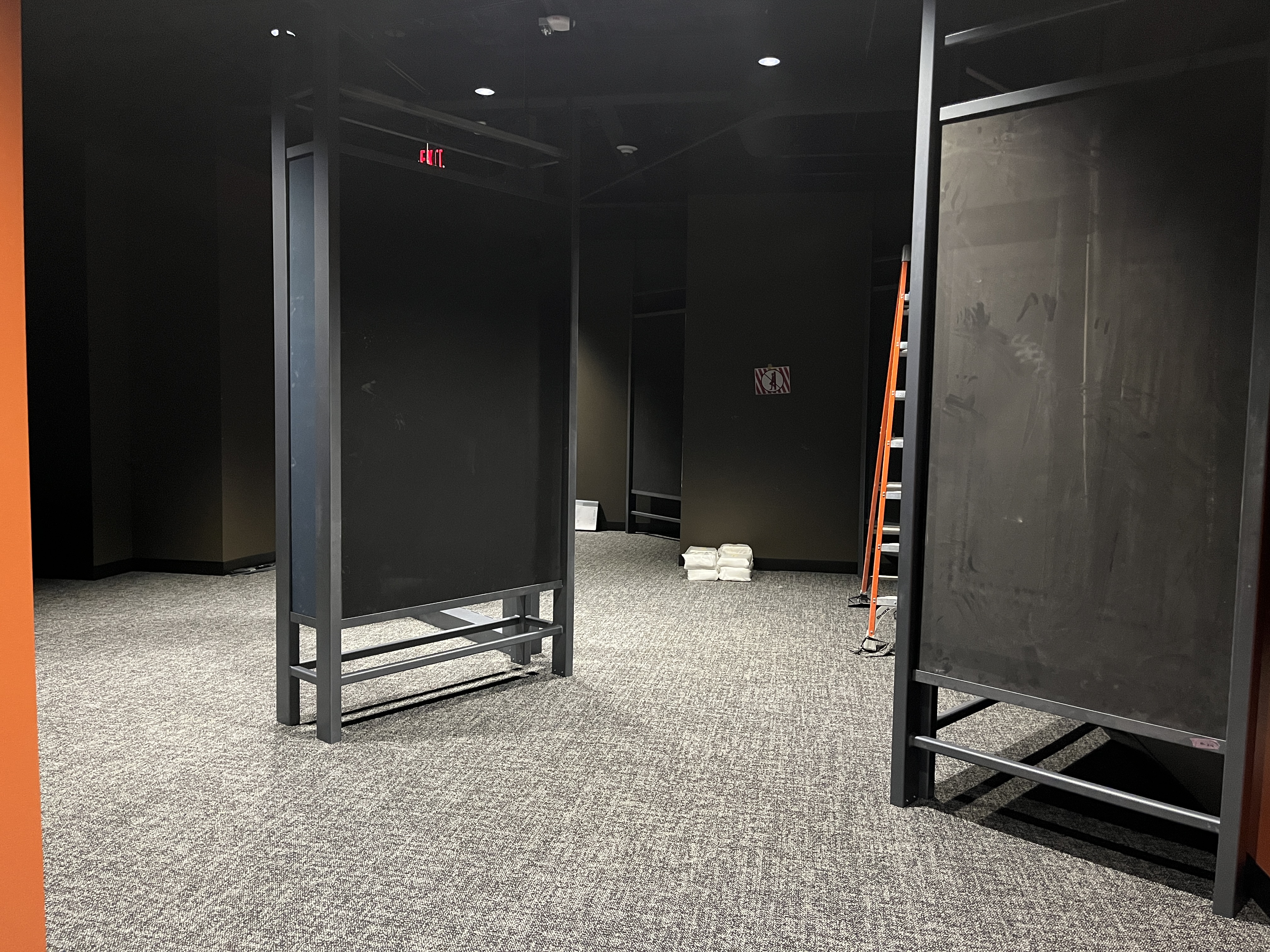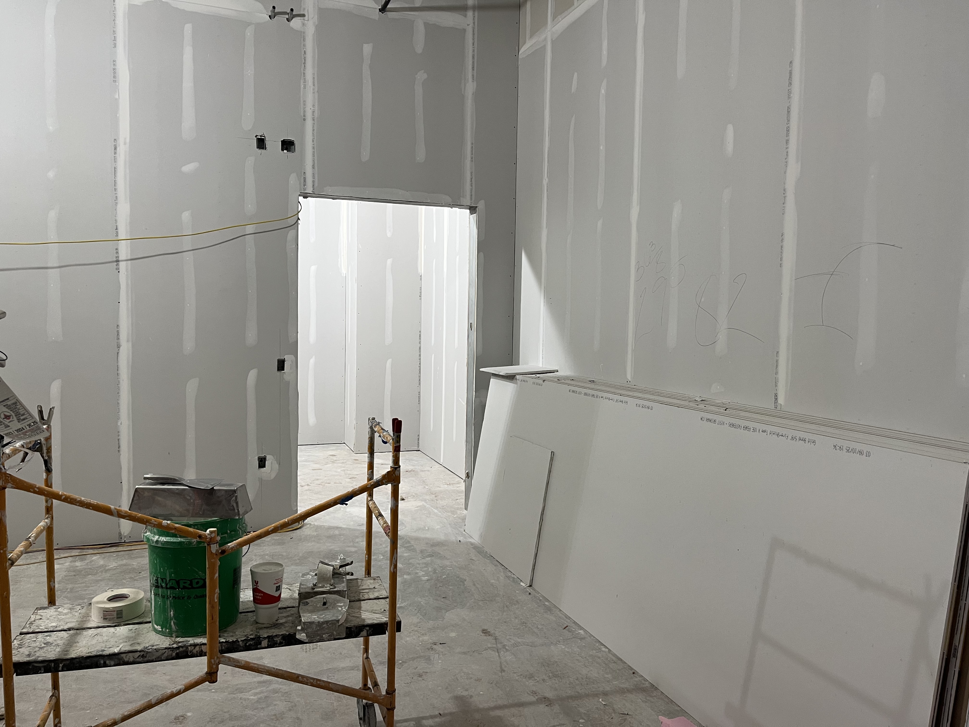 Silent video, pan shot of construction of museum expansion showing future reception desk and lobby area.