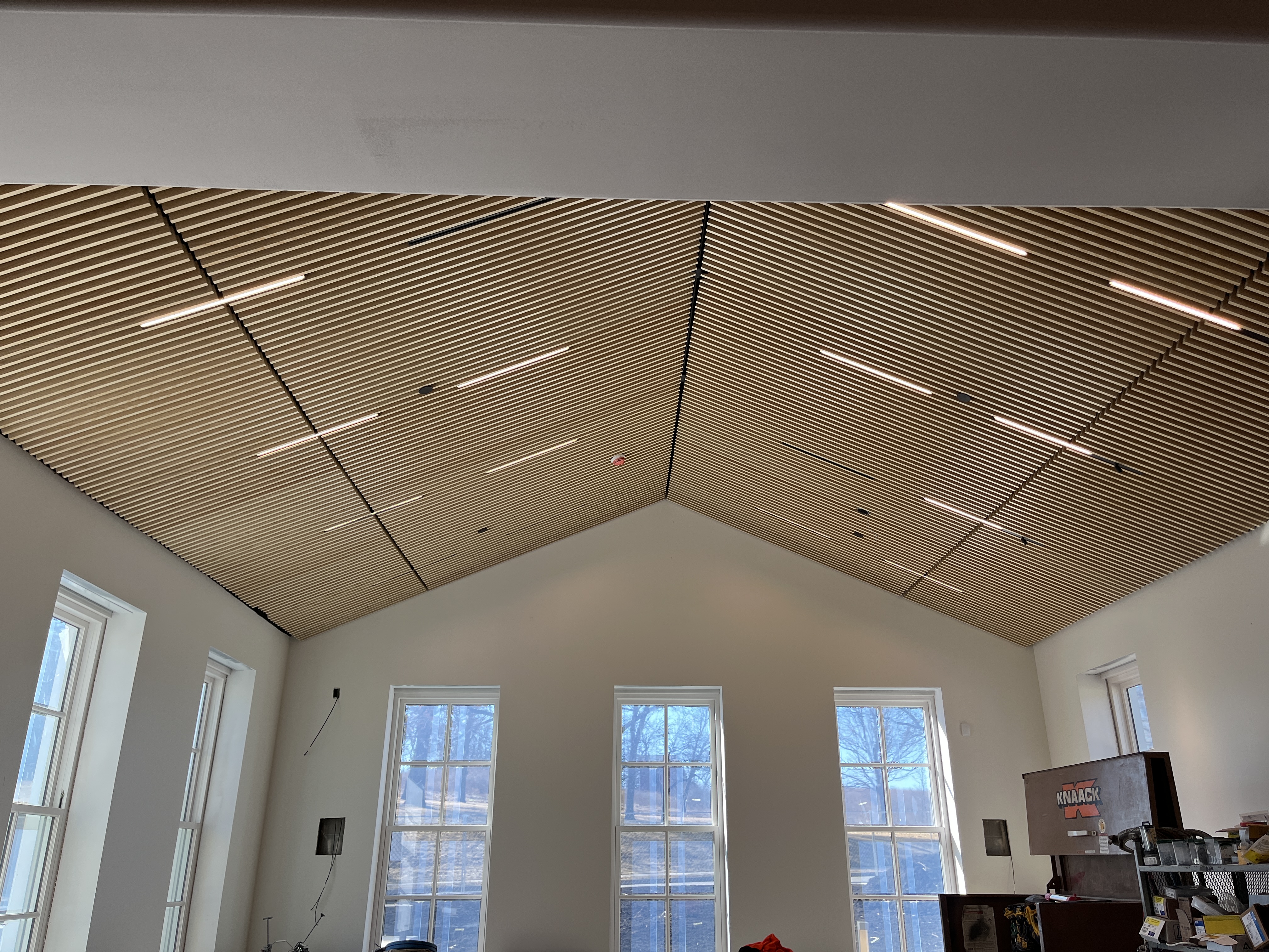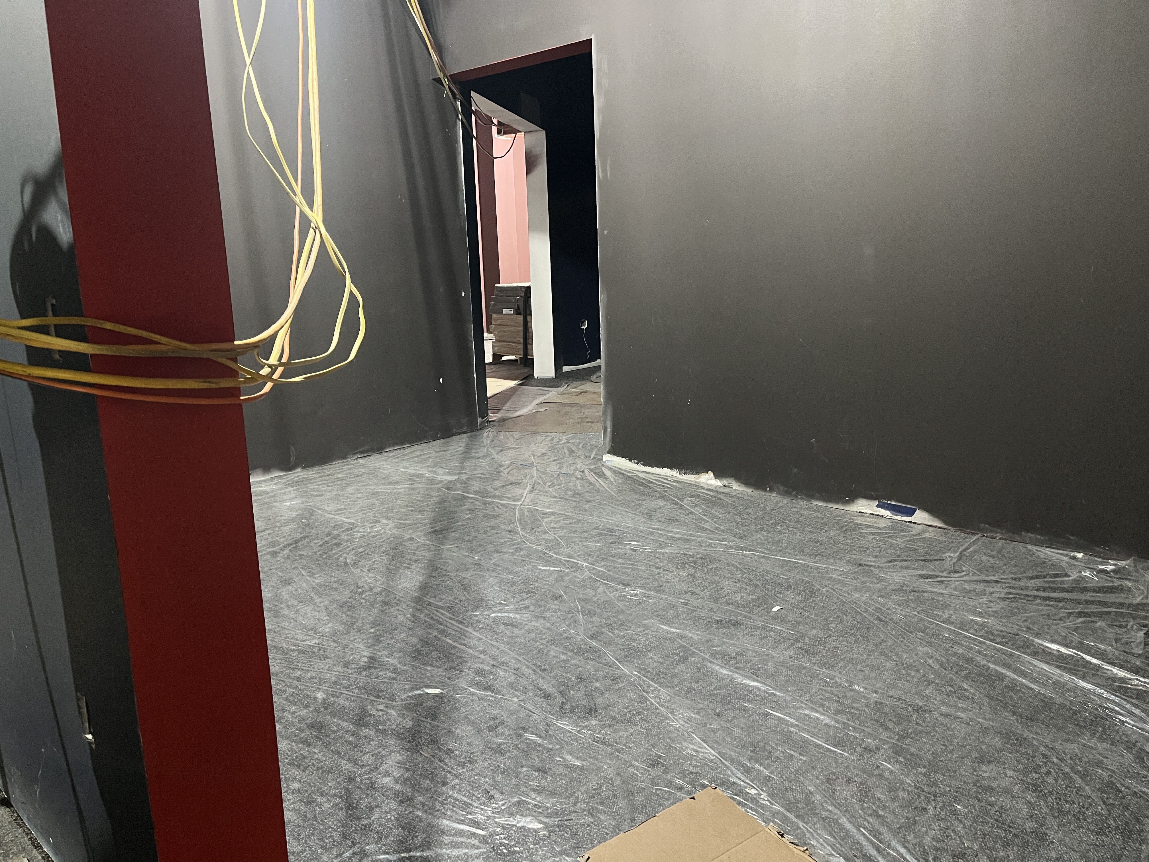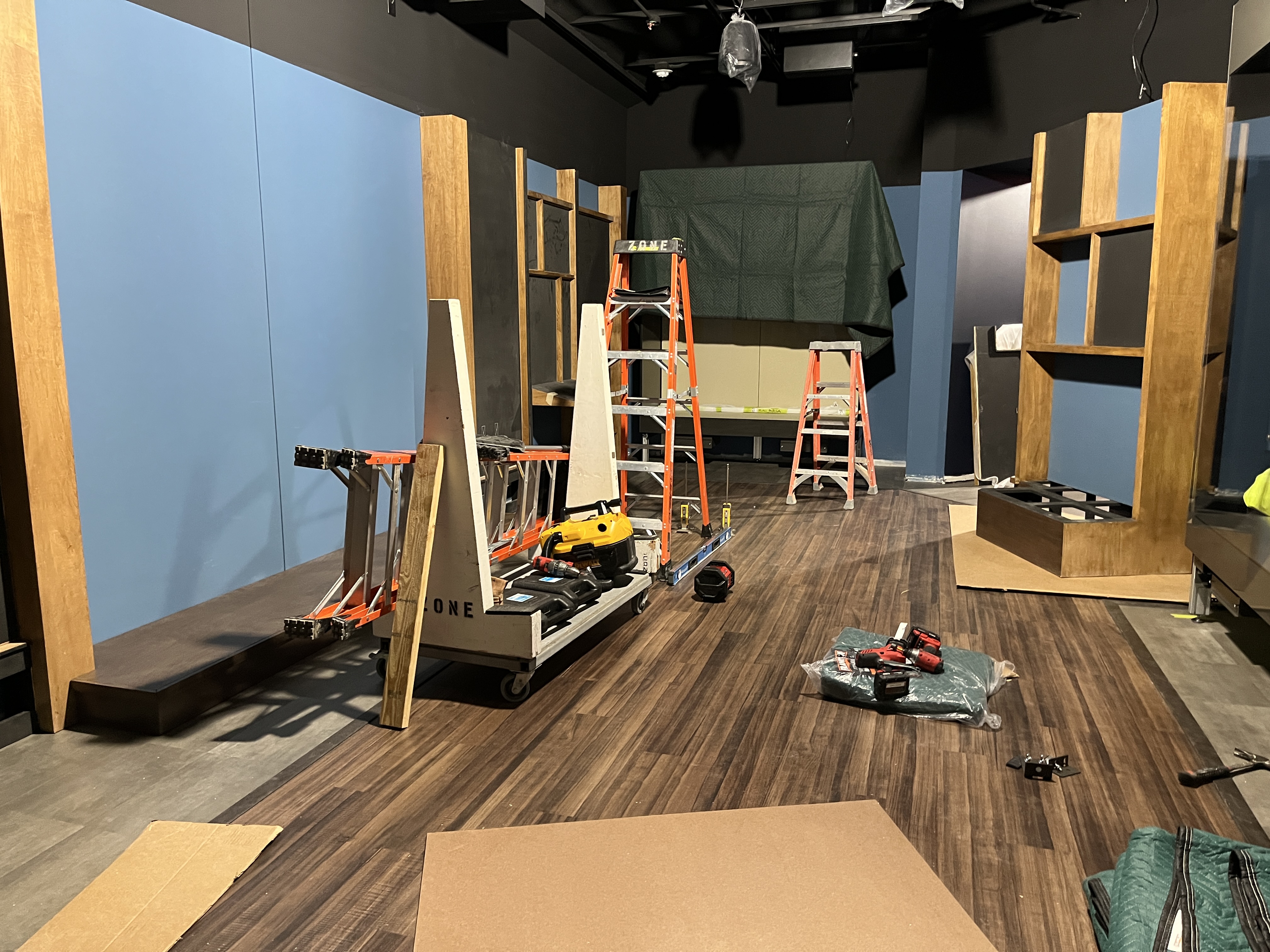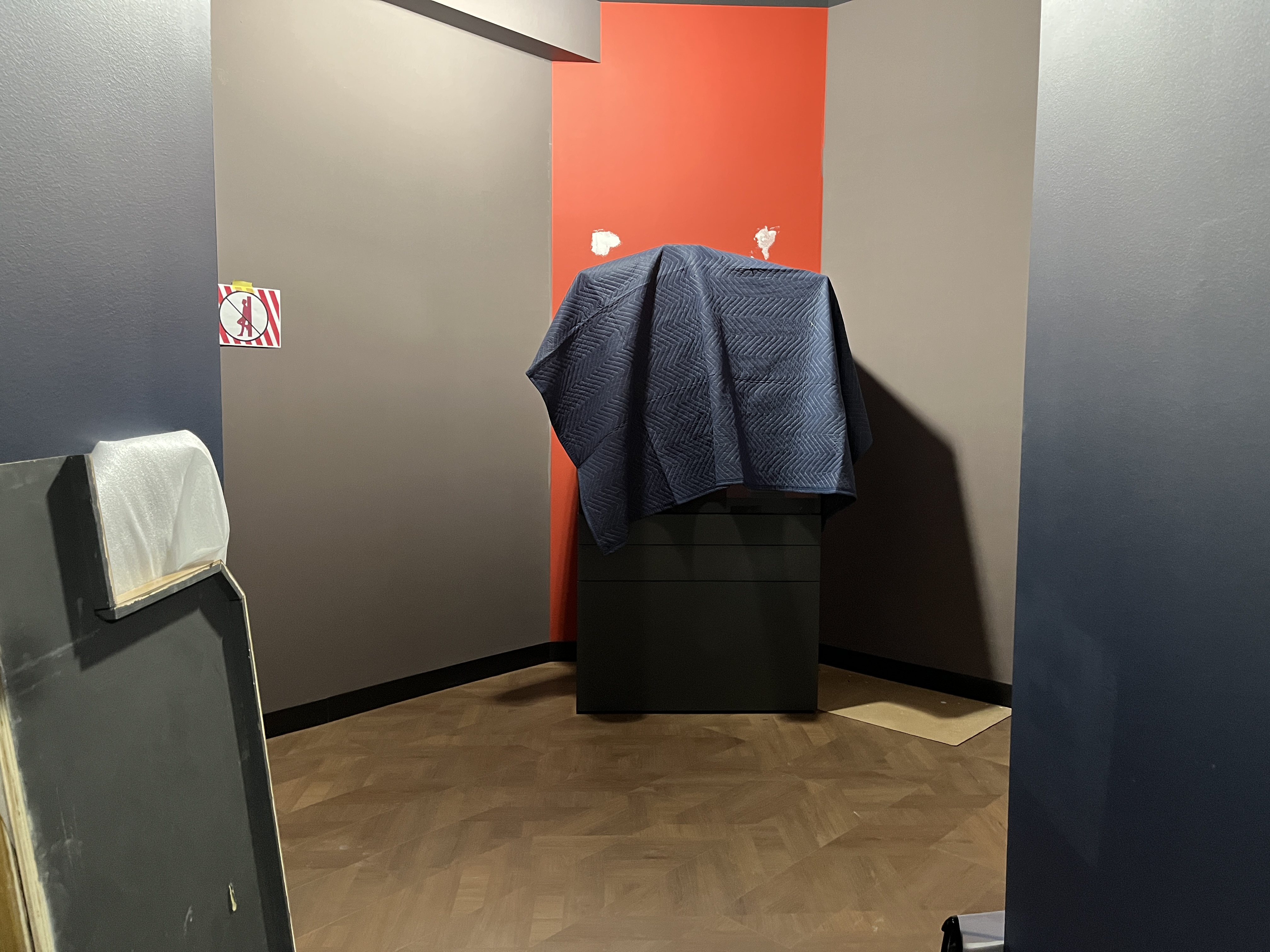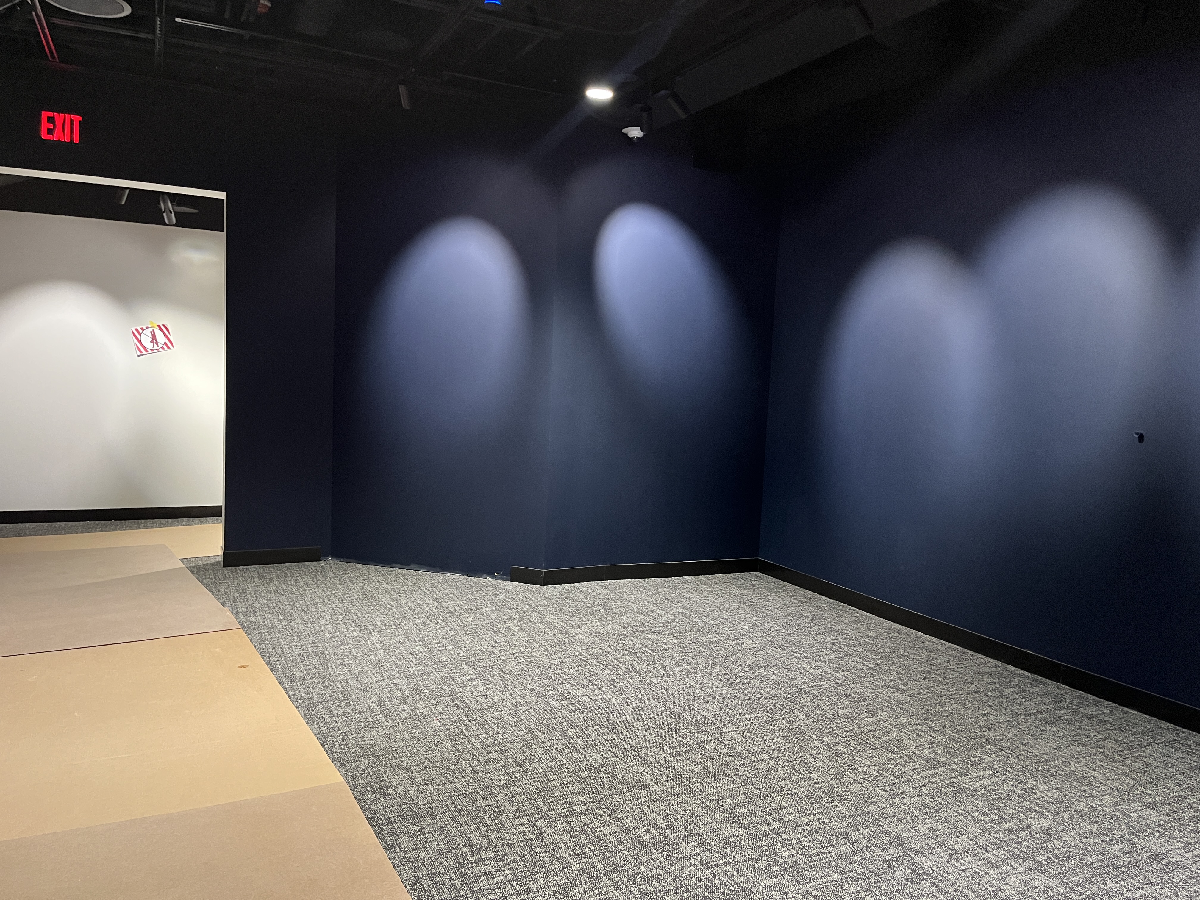 Silent video, pan shot of construction of museum expansion showing future reception desk and lobby area.