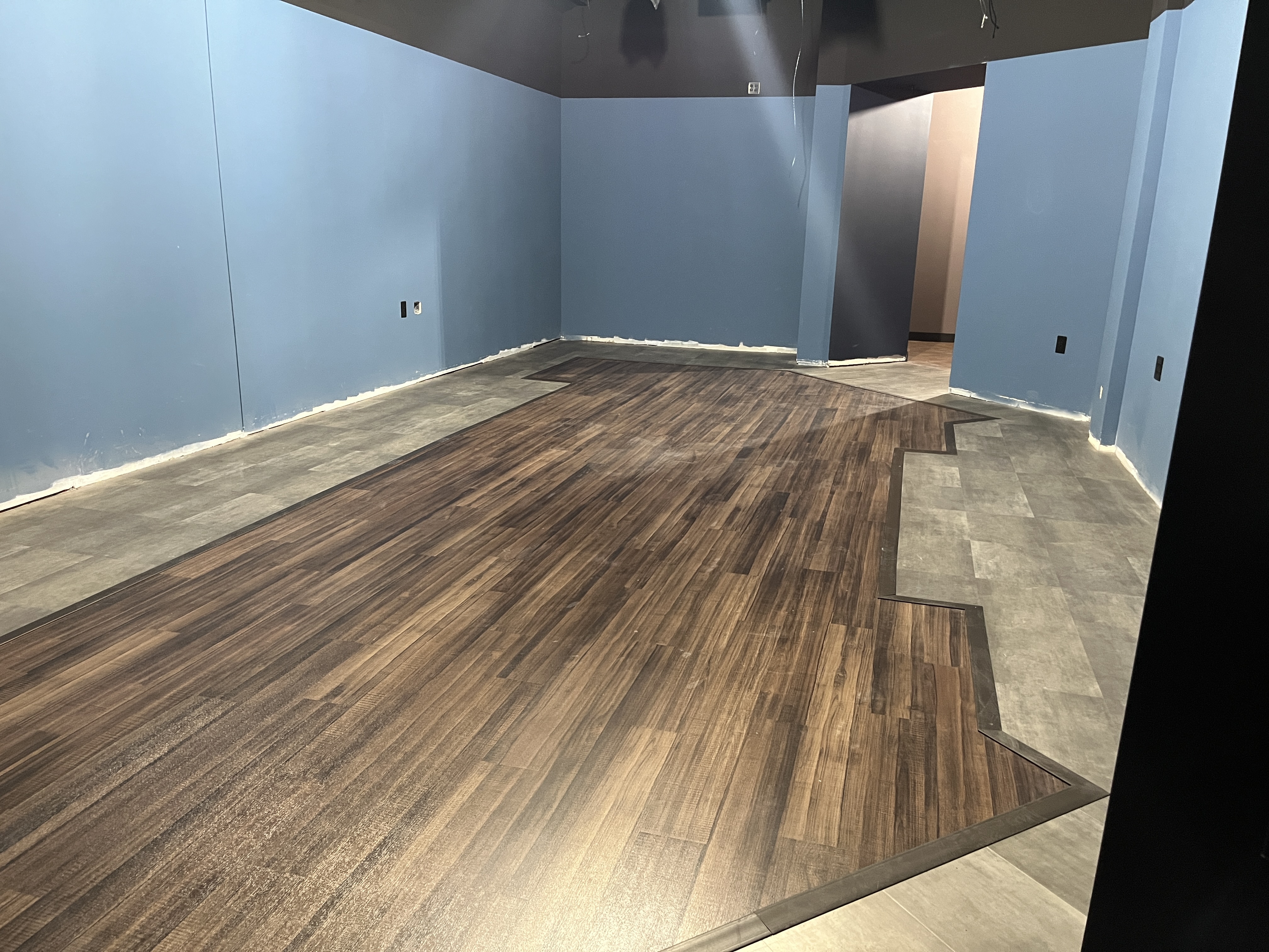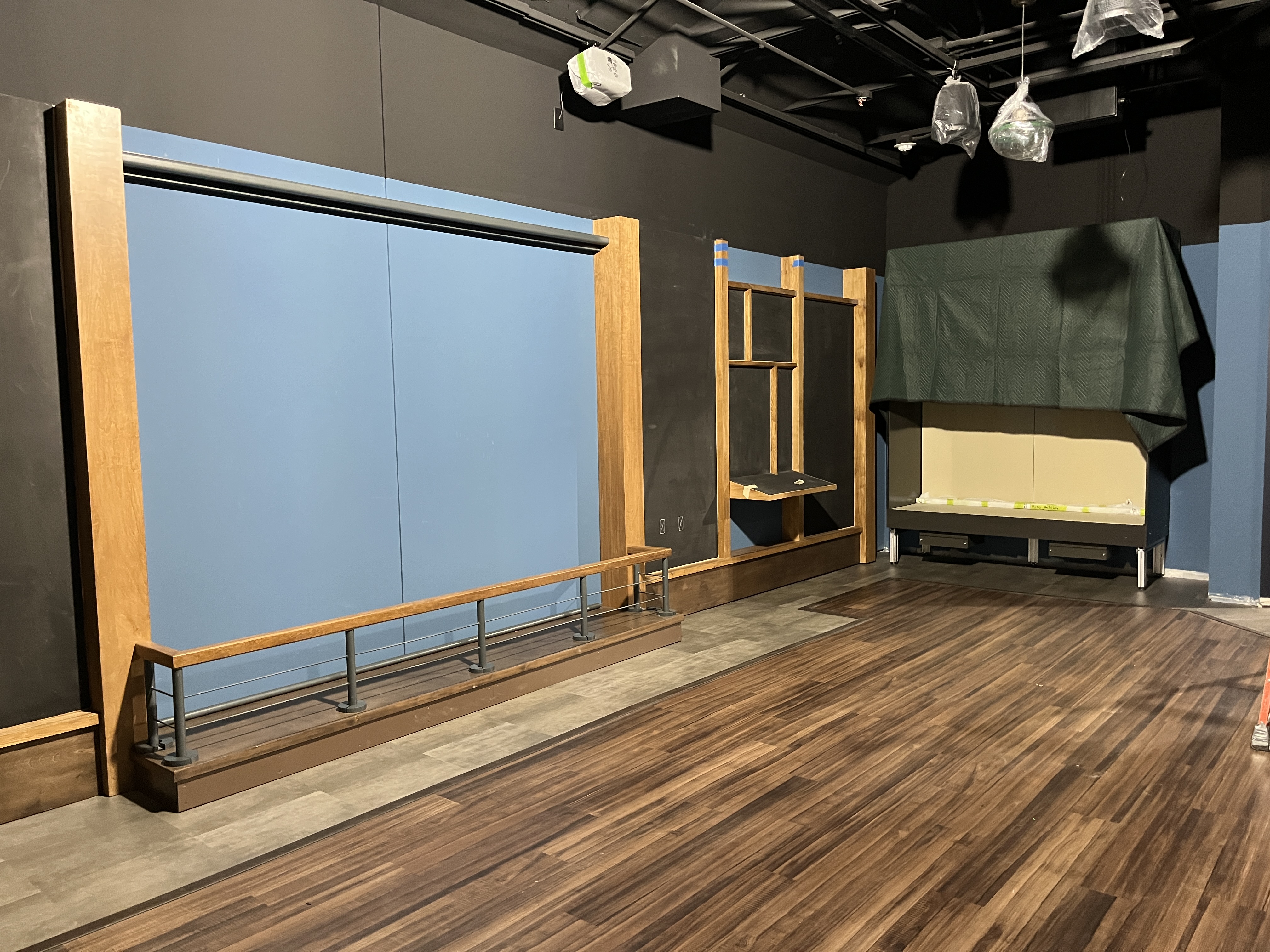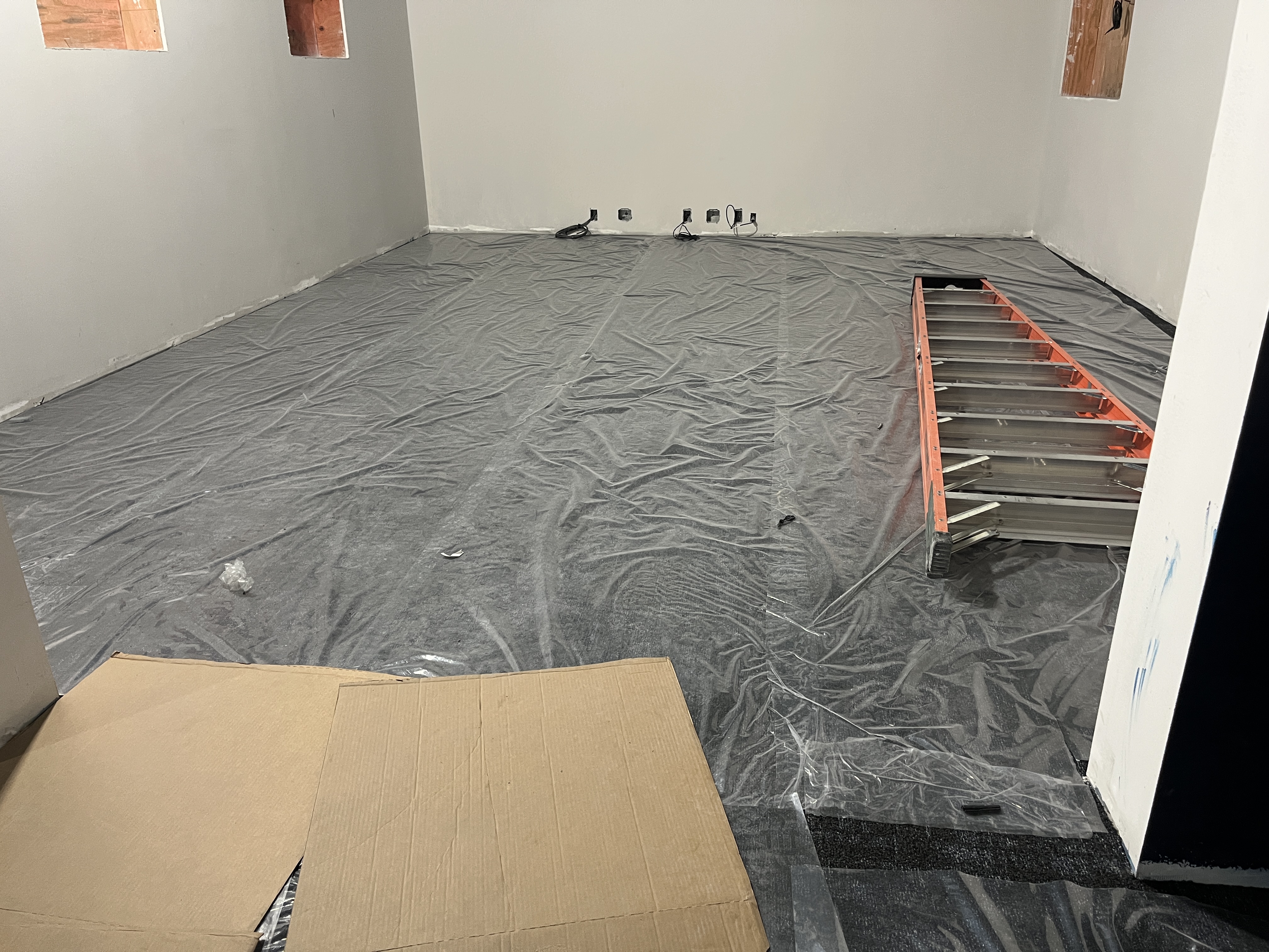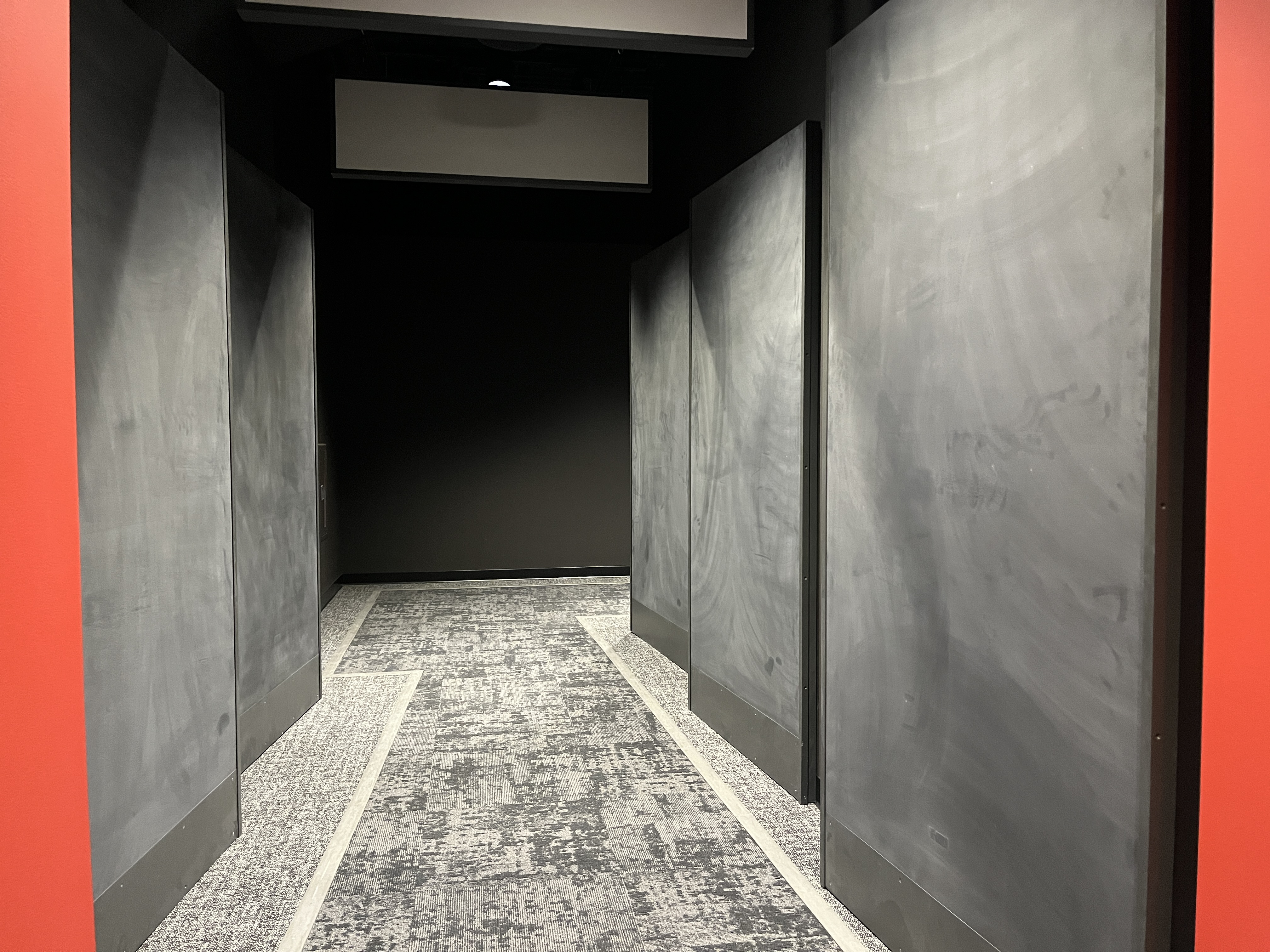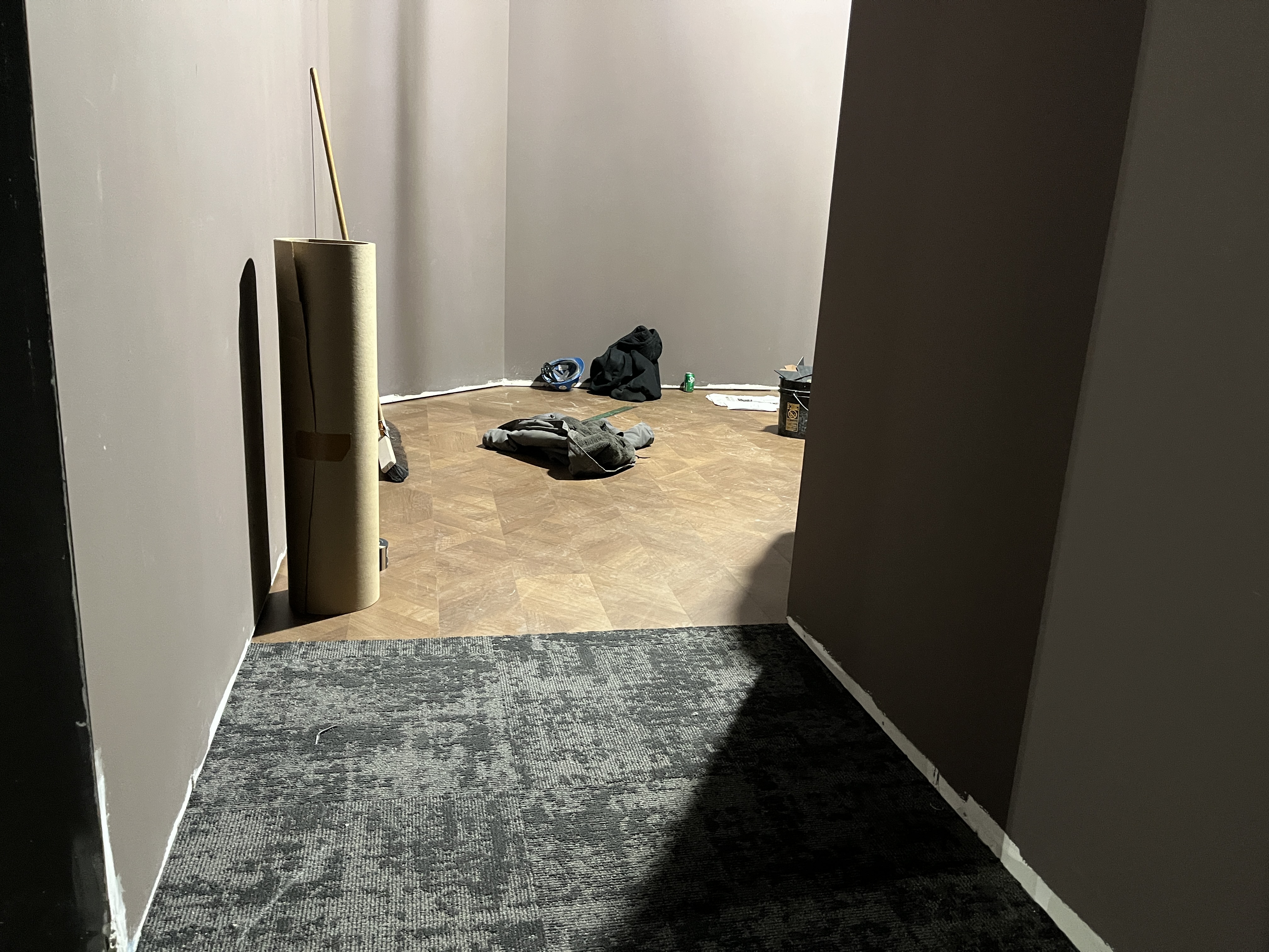 Silent video, pan shot of construction of museum expansion showing future reception desk and lobby area.