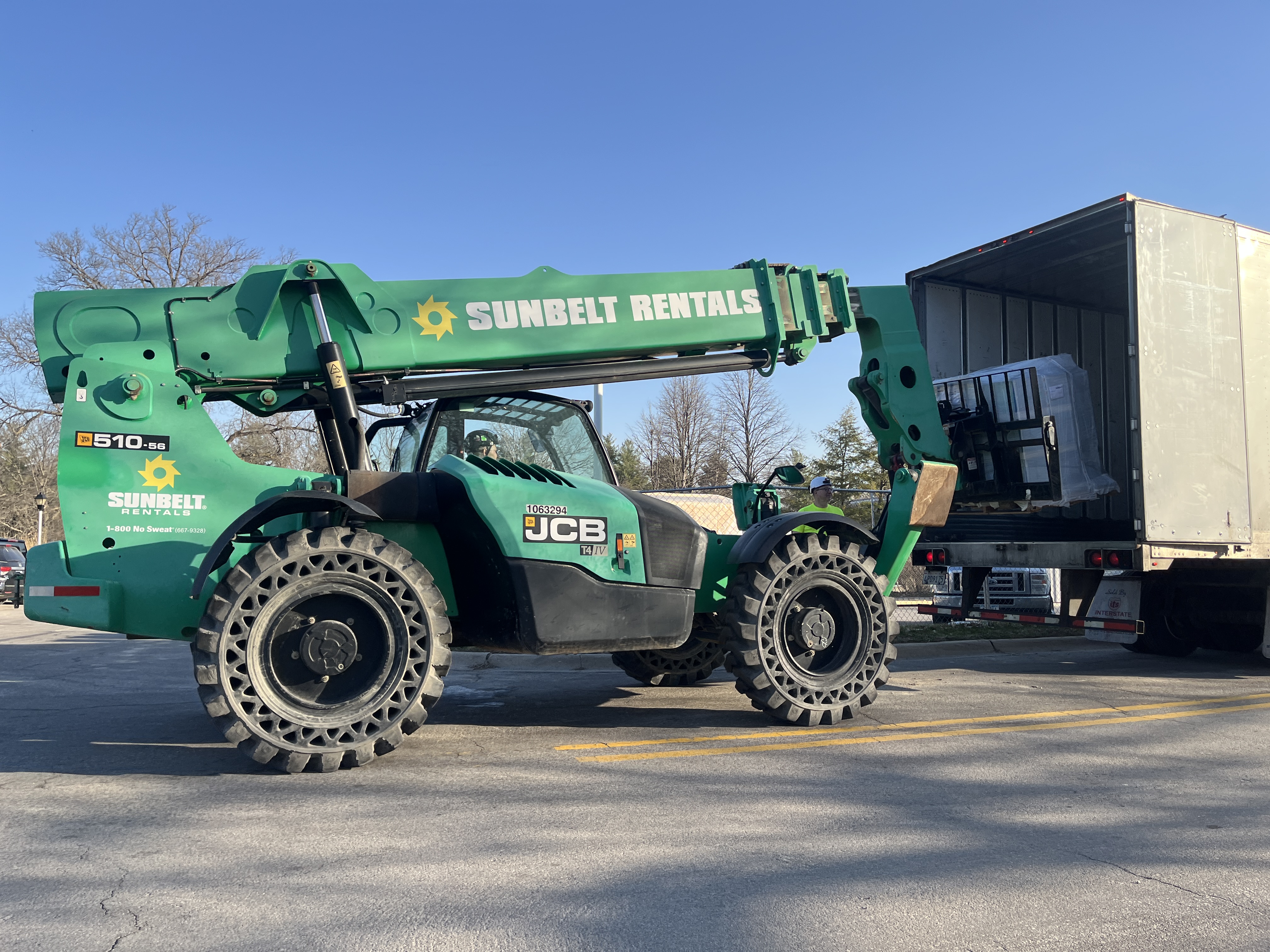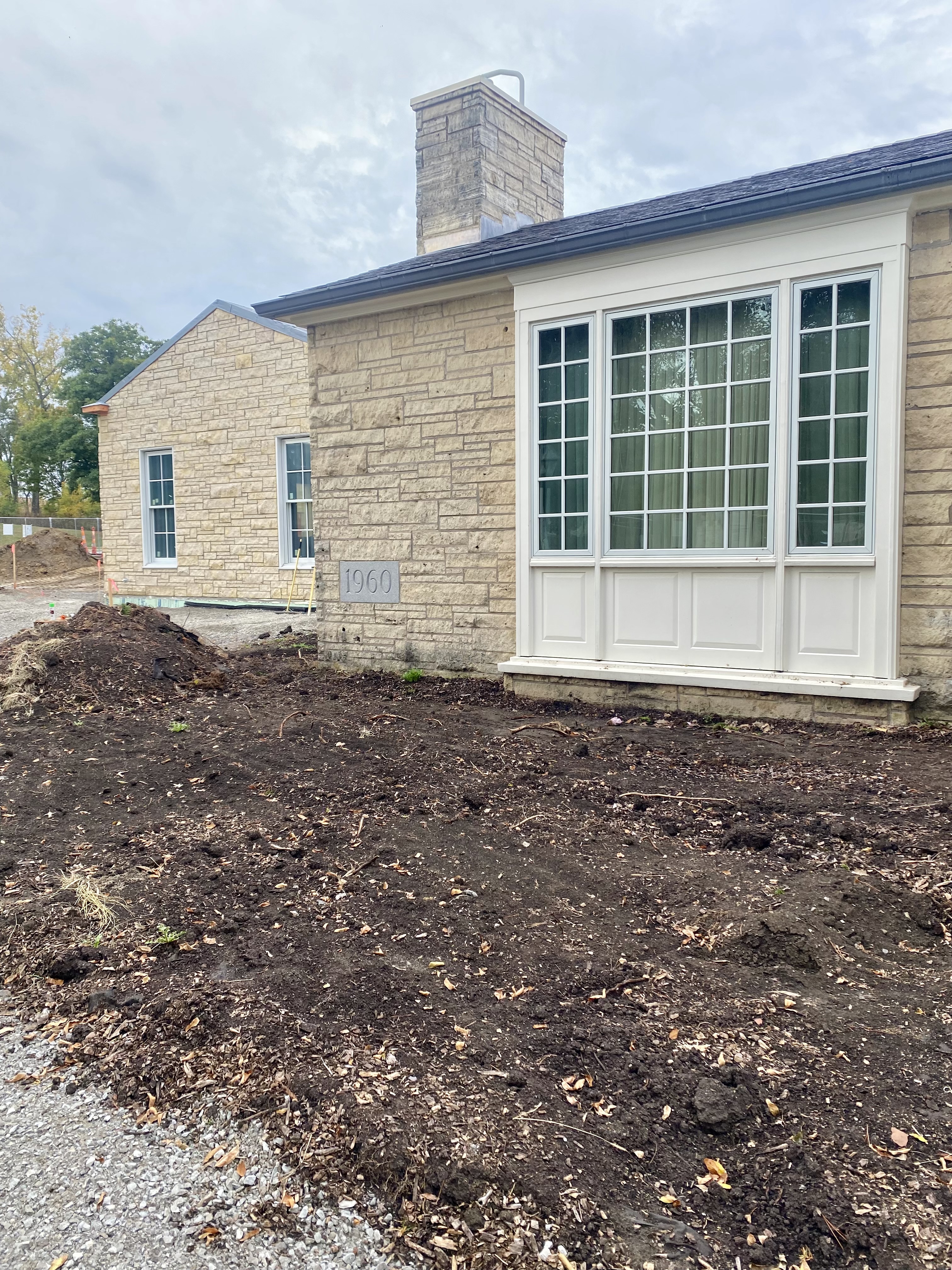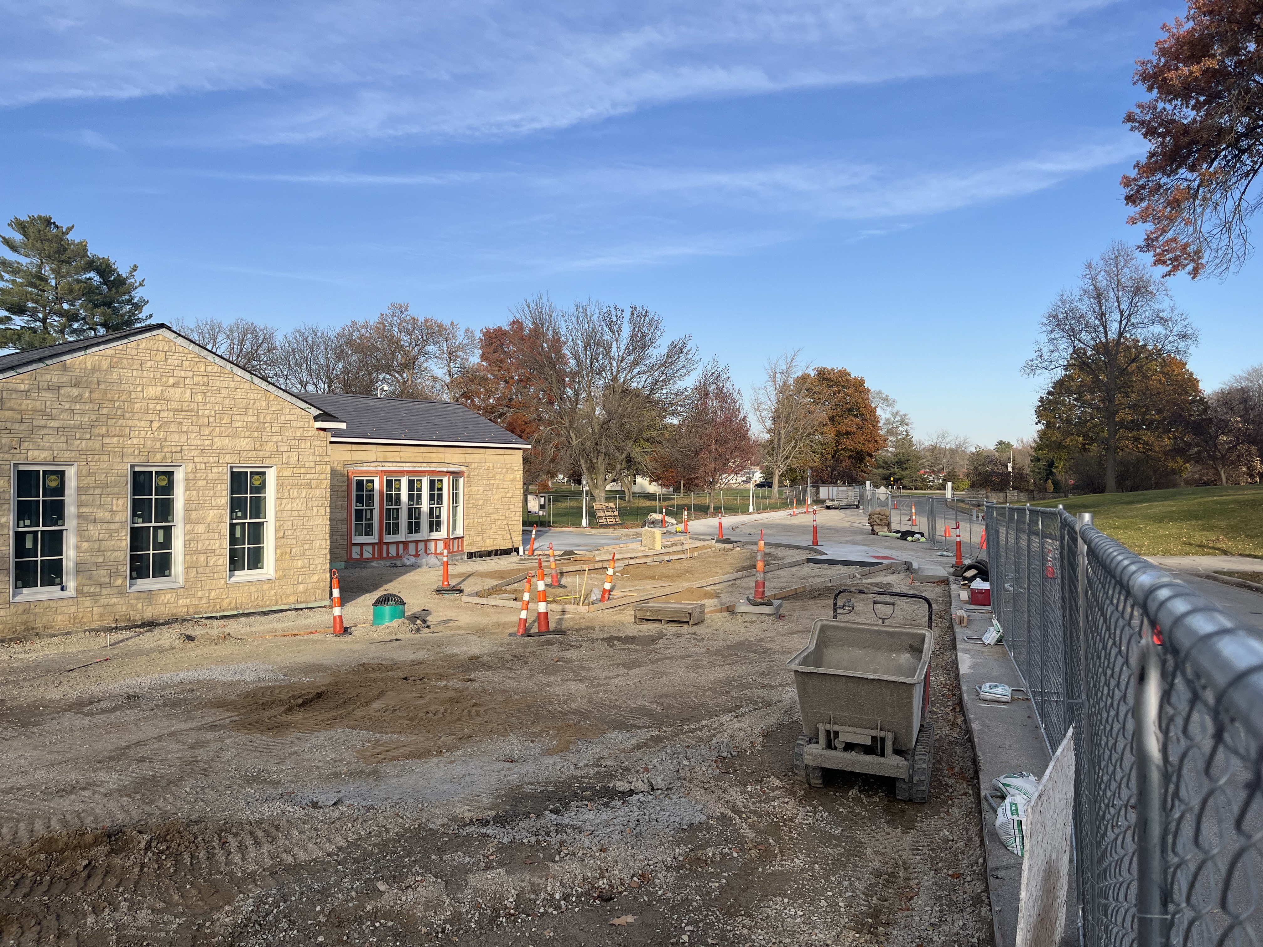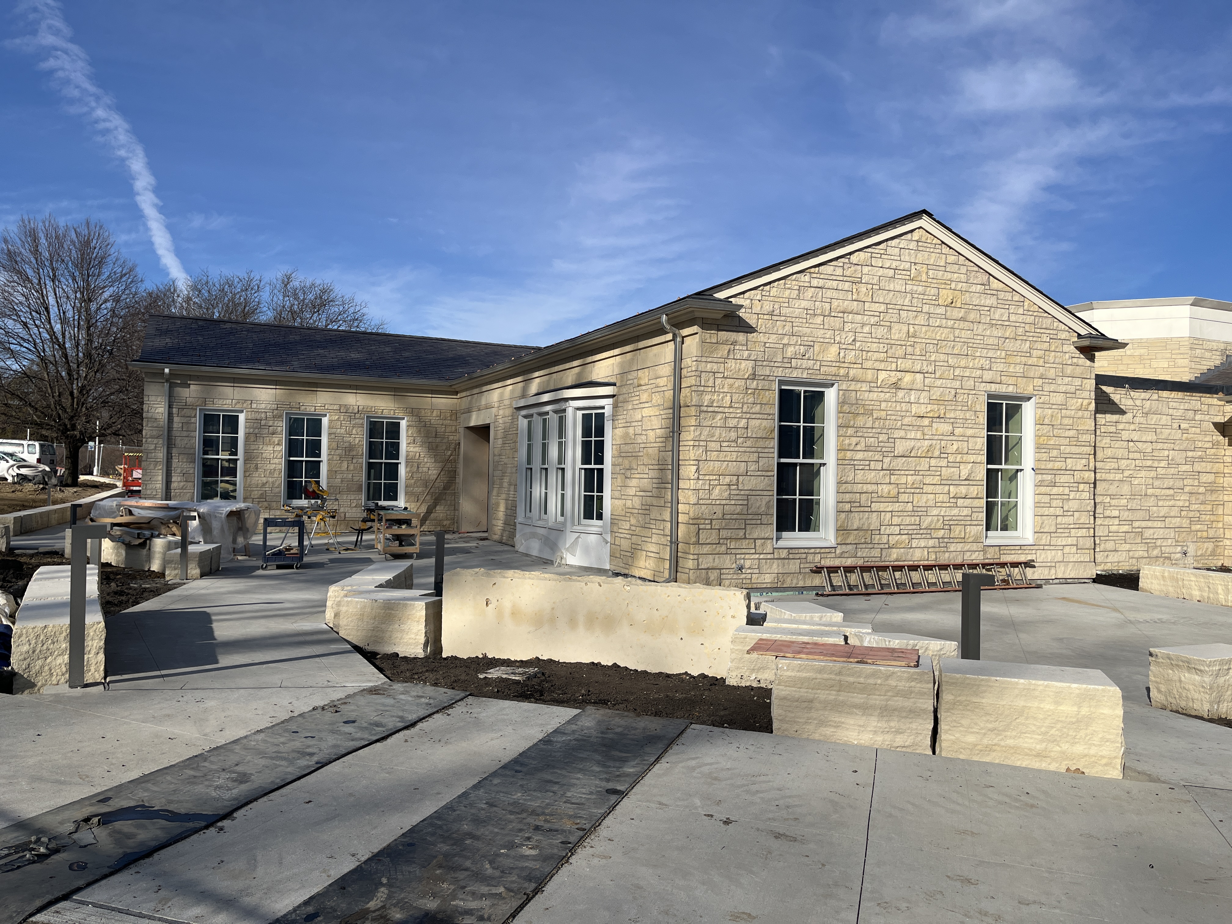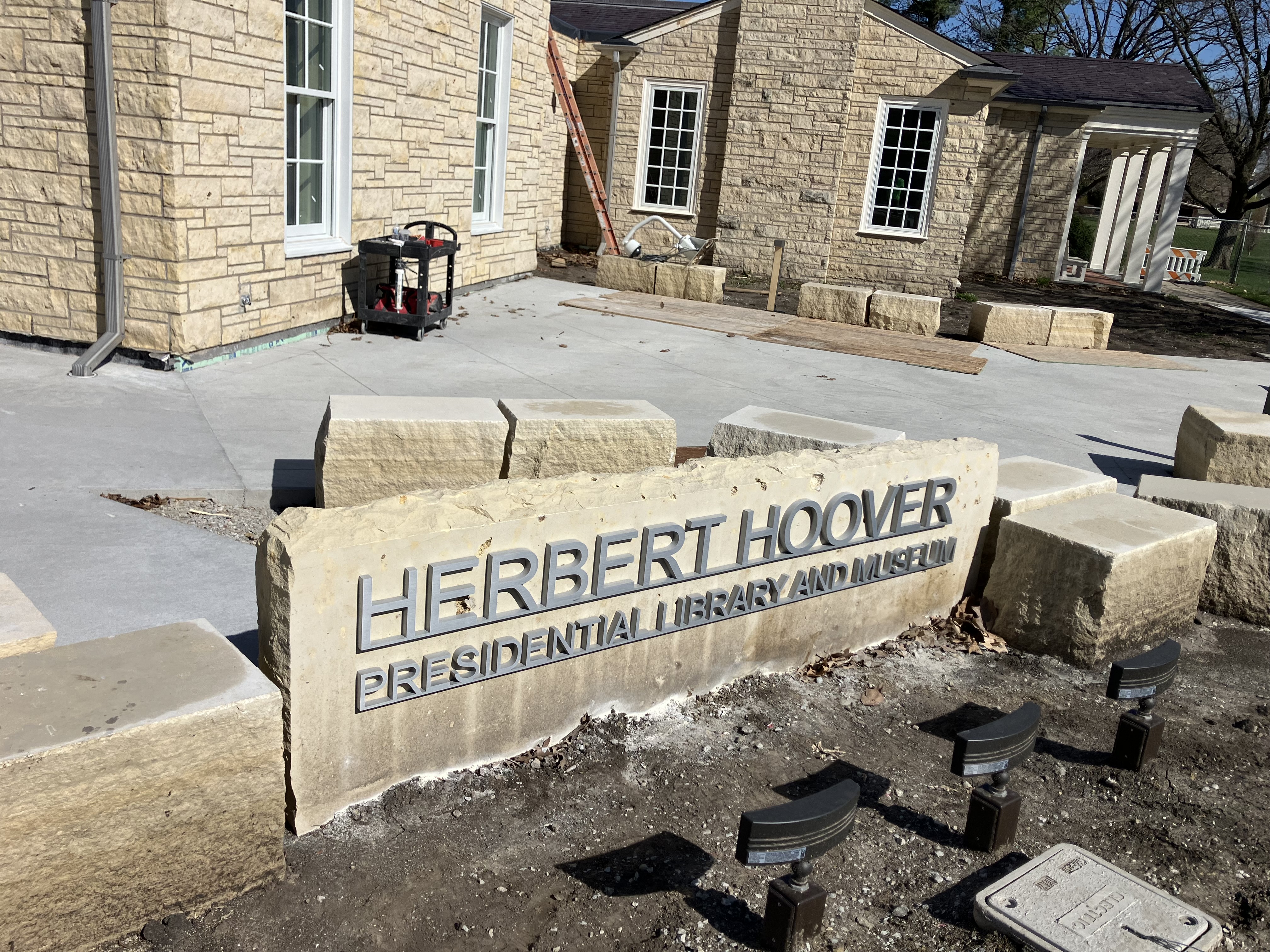 Demolition of the former main entrance of the Herbert Hoover Presidential Library and Museum in February 2025 -