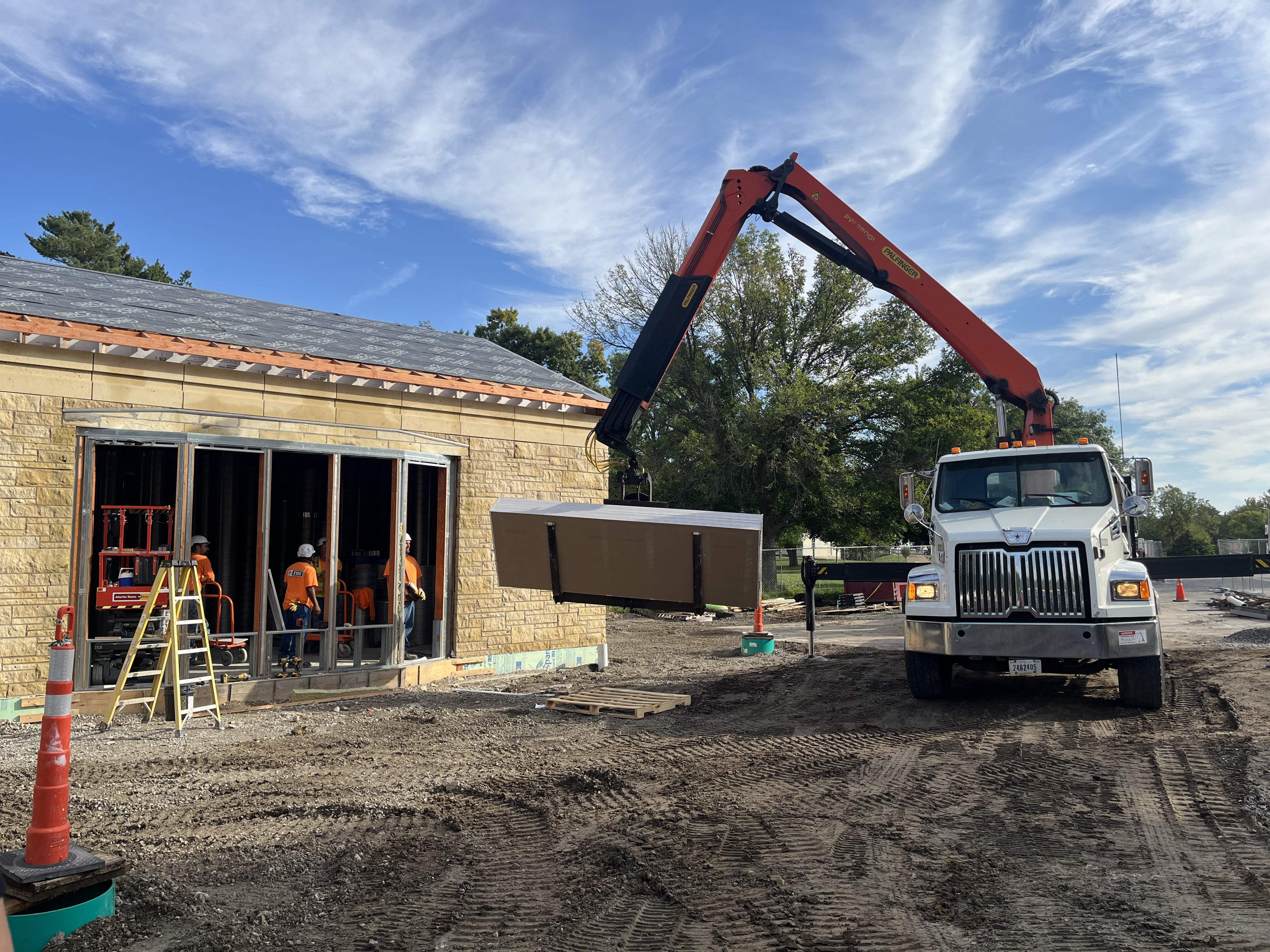 Demolition of the former main entrance of the Herbert Hoover Presidential Library and Museum in February 2025