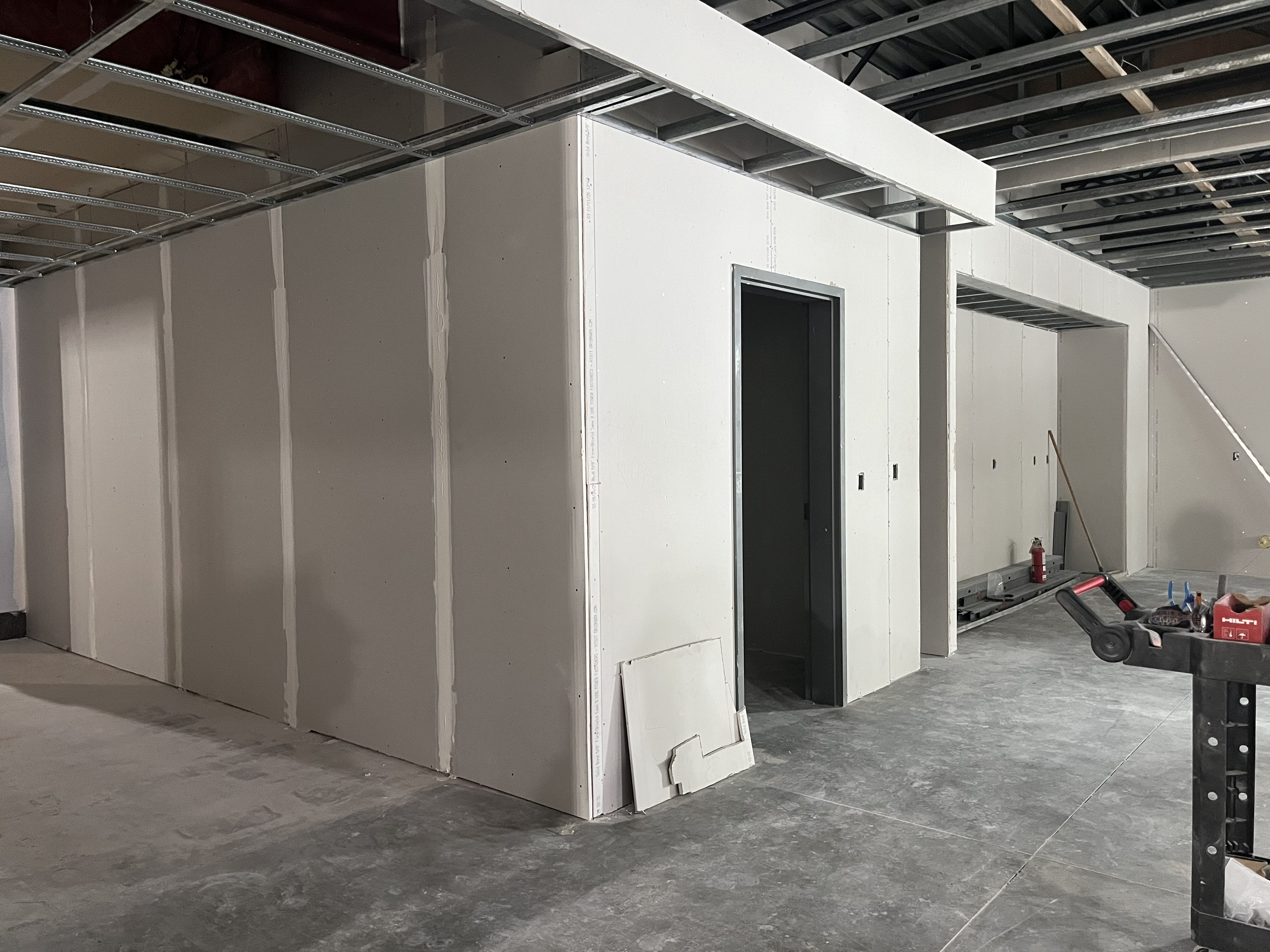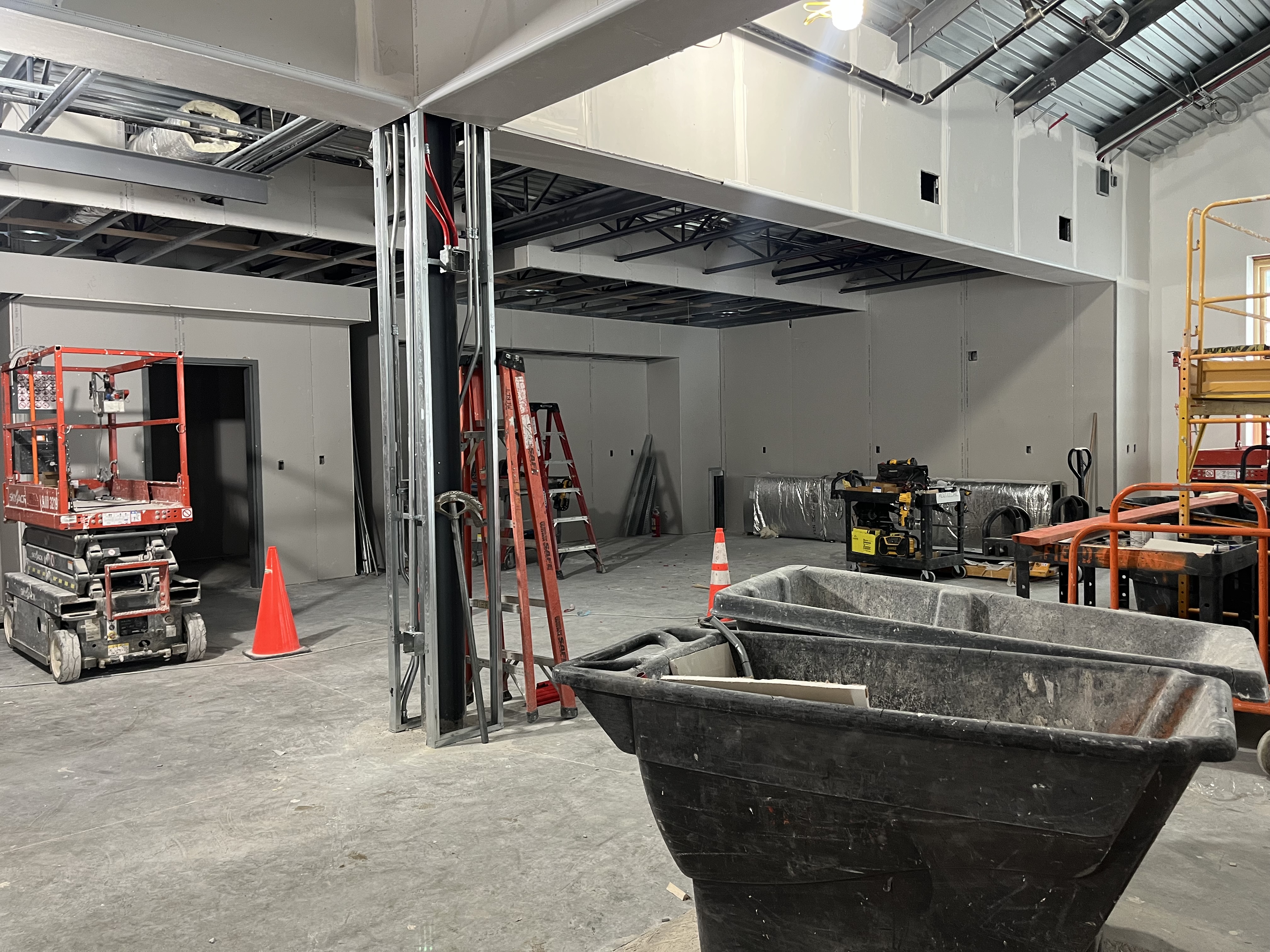 Pan of ongoing construction of the new Museum lobby, December 10, 2025
