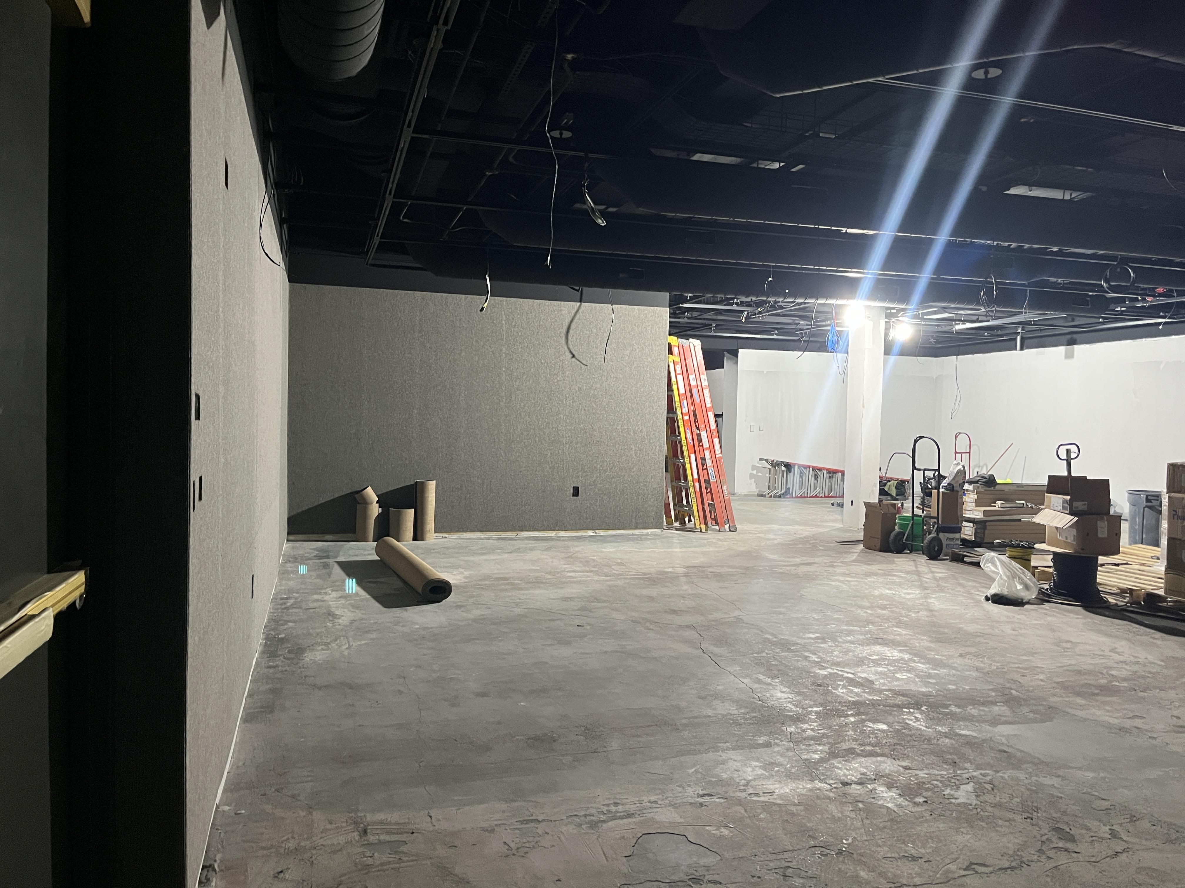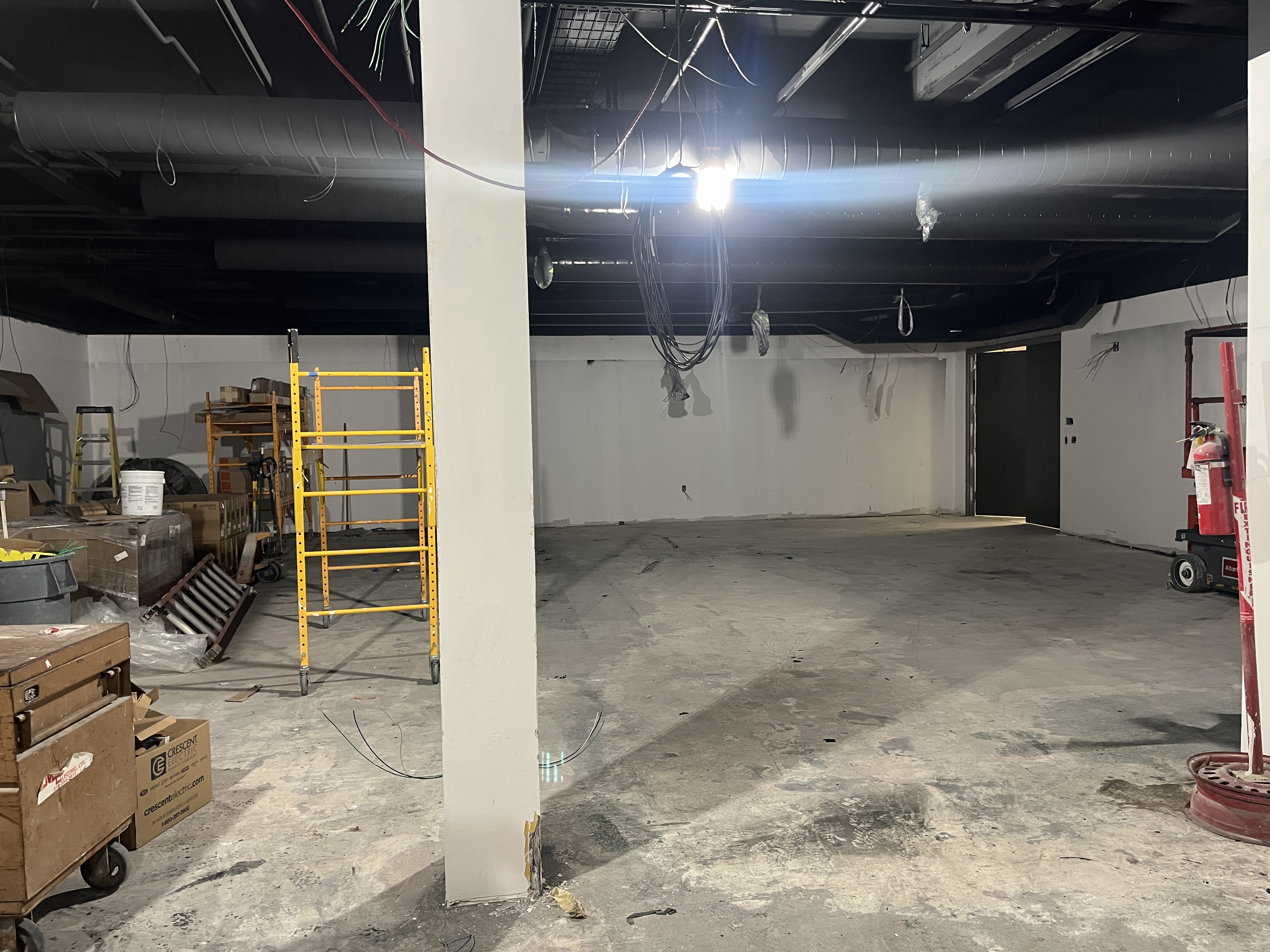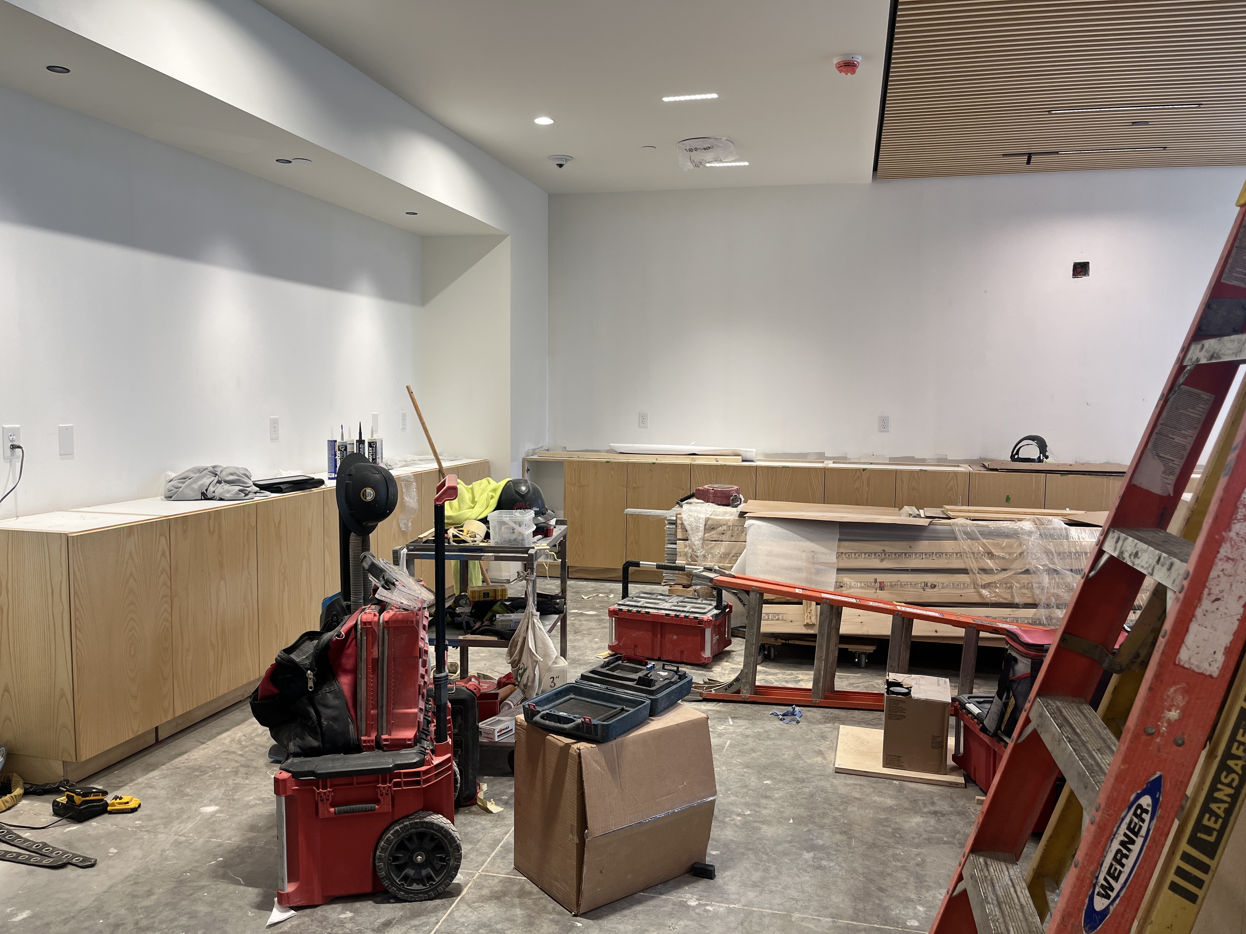 Pan of ongoing construction of the new Museum lobby, December 10, 2025 -
