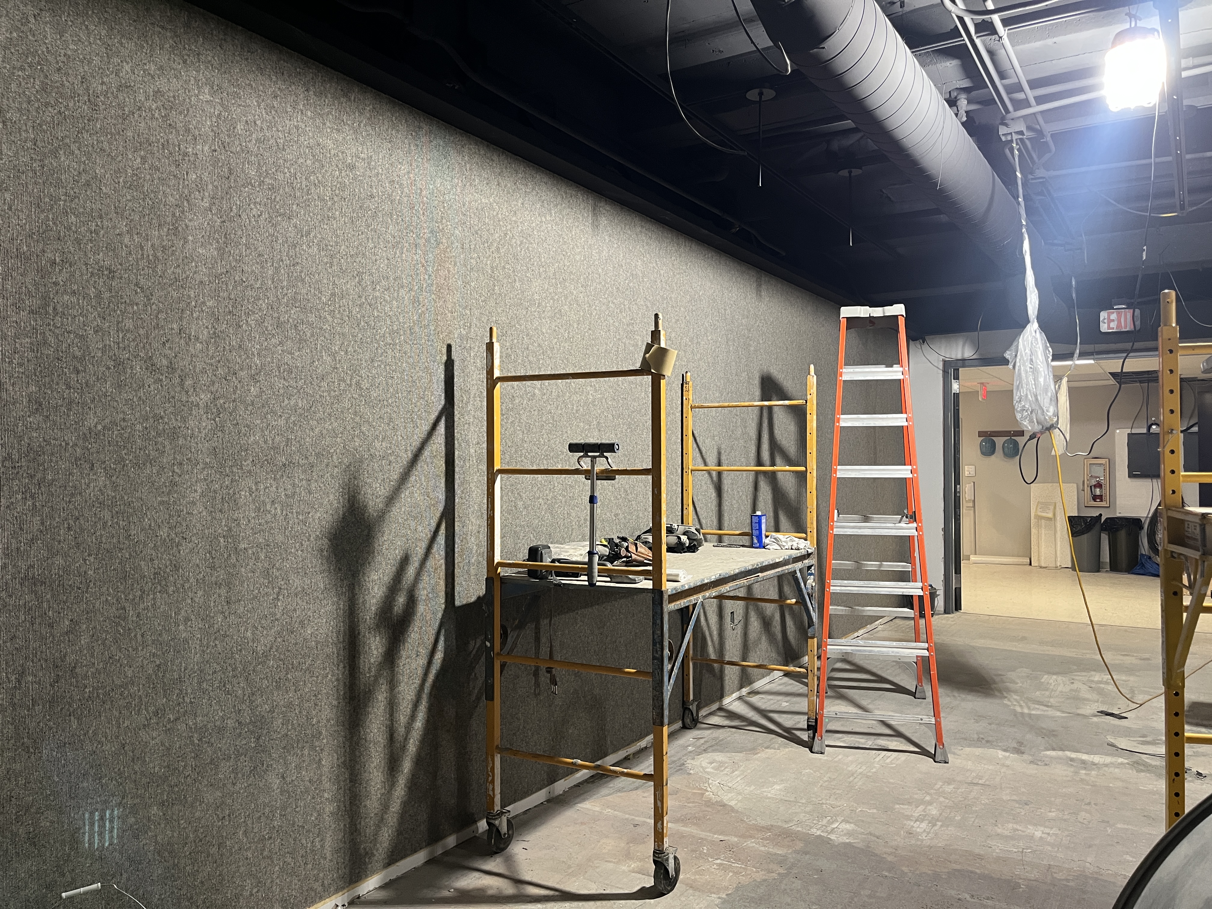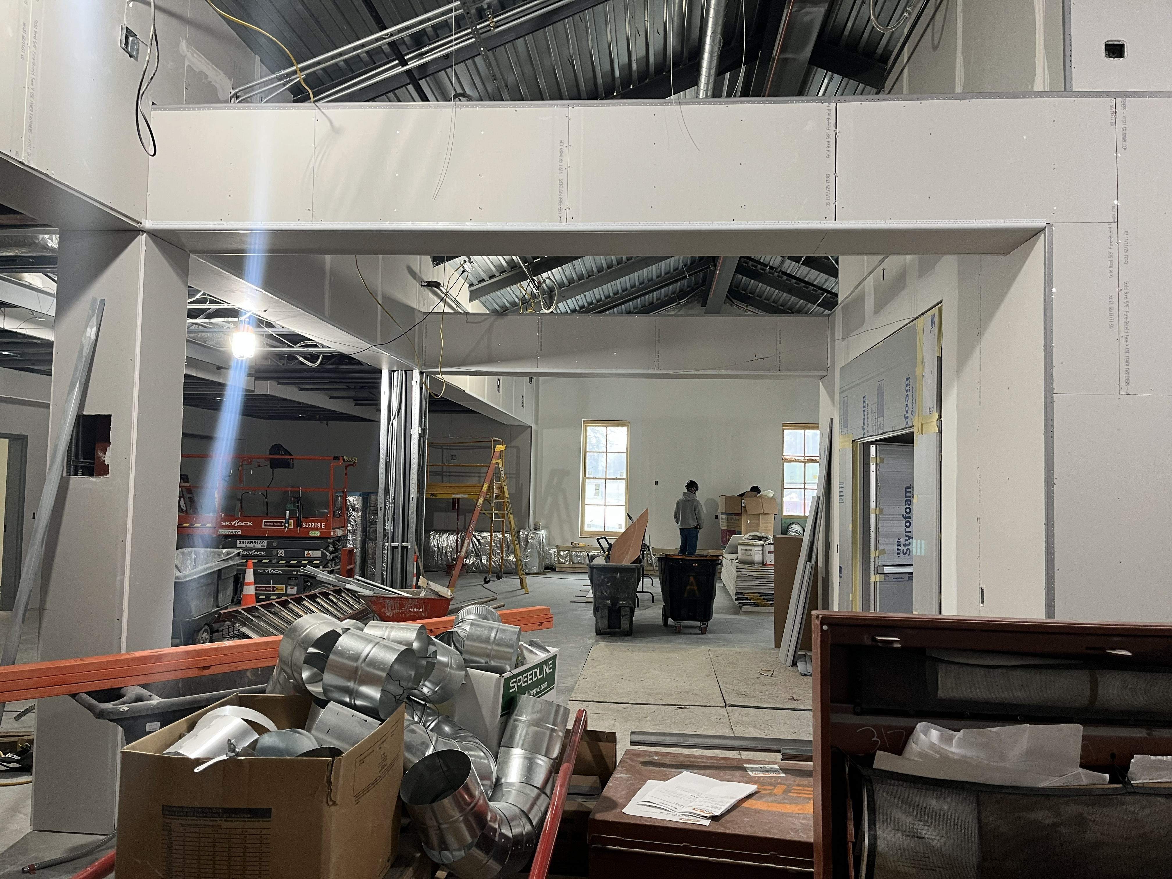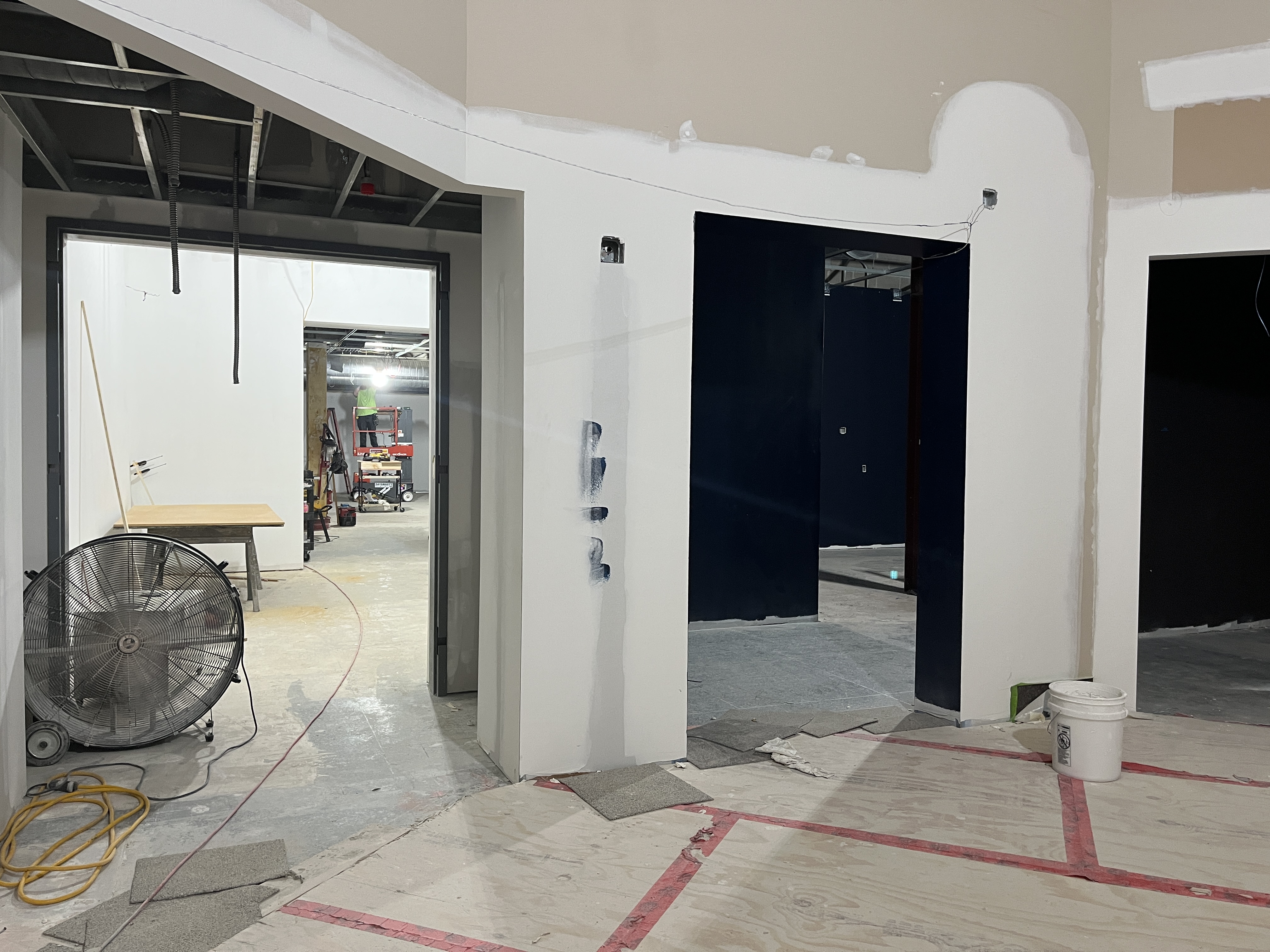 Pan of ongoing construction of the new Museum lobby, December 10, 2025 -